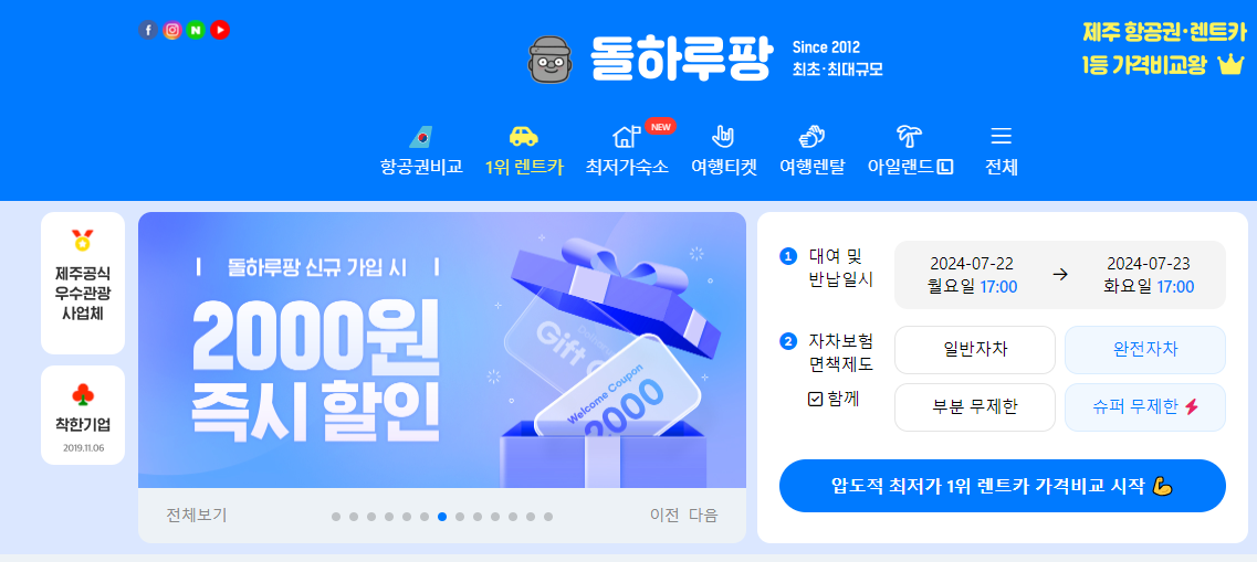 - 돌하루팡 홈페이지에서 다양한 렌터카 업체의 가격을 비교하기
