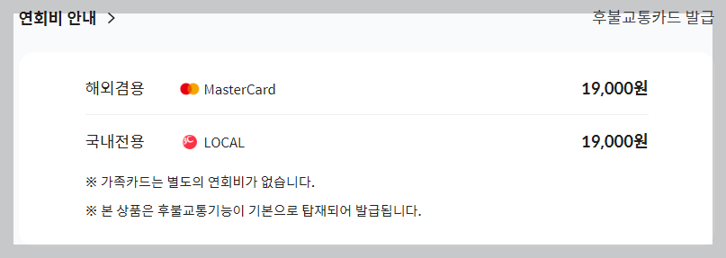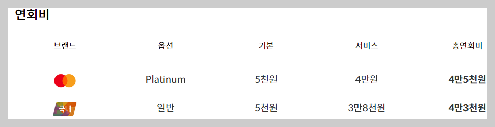 연회비는 아래 이미지를 참고해주세요.