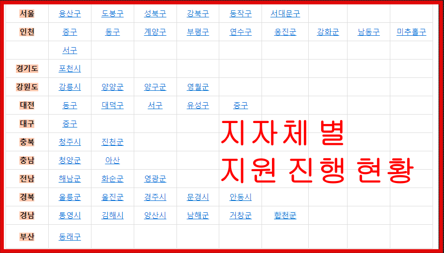 지자체 별 지원 사업