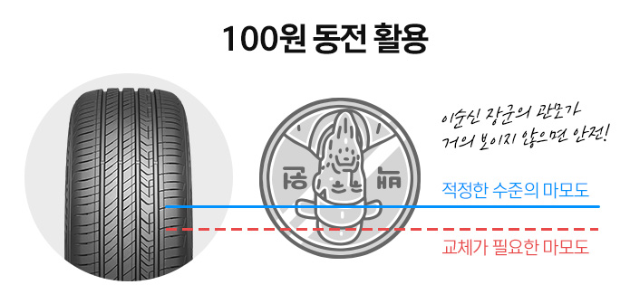 해당 마모선을 확인하는 방법은 100원짜리 동전을 이용하는 방법이 있습니다.