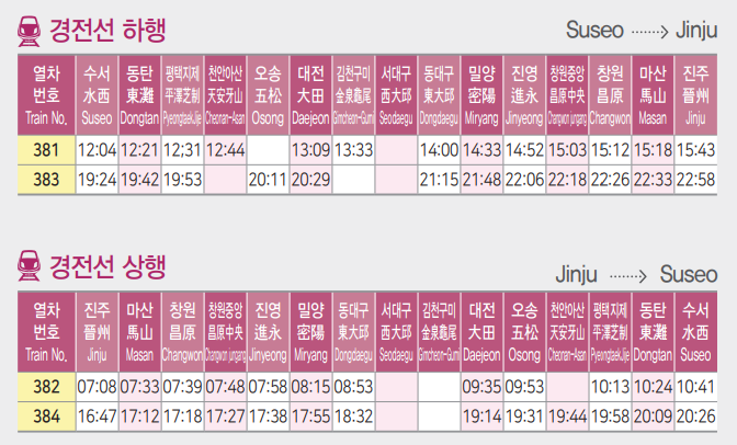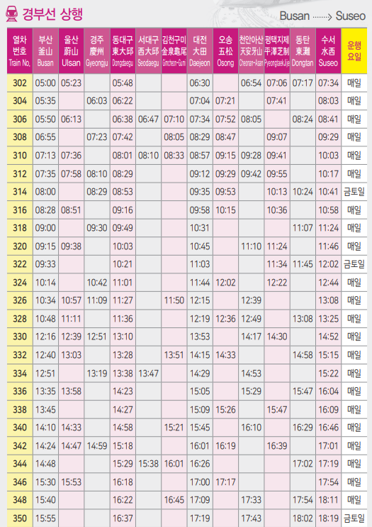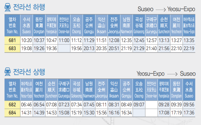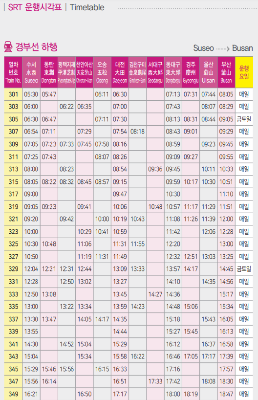 SRT 시간표 2024년 5월 최신(경부선, 호남선, 경전선, 동해선, 전라선)