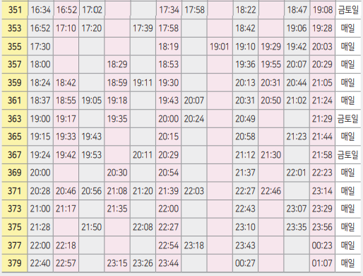 목차를 누르시면 해당 시간표로 바로 이동하니 참고하세요.